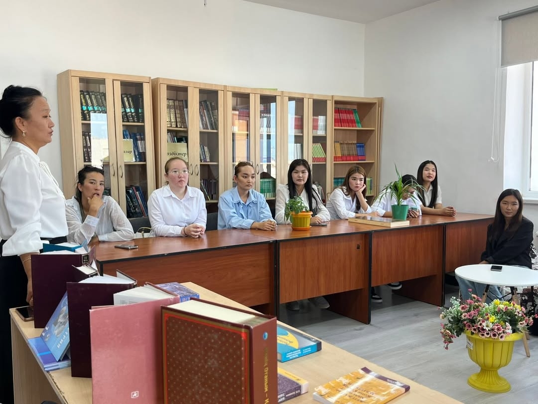 Қазақстан Республикасының 30 жылдығына орай "Ақиқаттың айнасы-Ата заң"атты галерия сағаты мен "Ата Заңым-айбыным" атты кітап көрмесі өткізілді.Мақсаты: студенттерге Ата заңымыз бен адам құқықтары туралы түсінік беру, Отанға, елге, заңға деген құрмет сезімін арттыру болып...